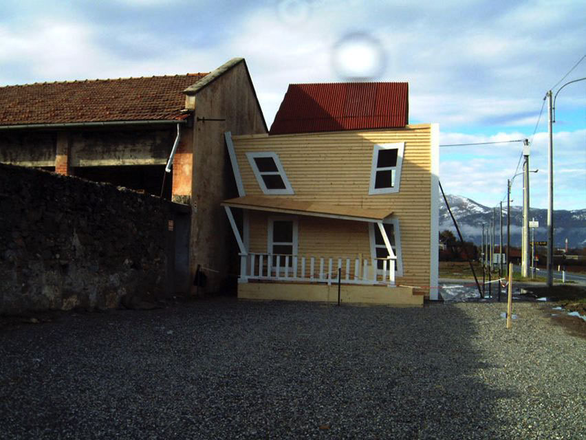 La casa di Buster Keaton nel corto “One Week” del 1920 si appisola, completamente storta, sul bel palazzo del filatoio di Caraglio (CN).
